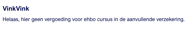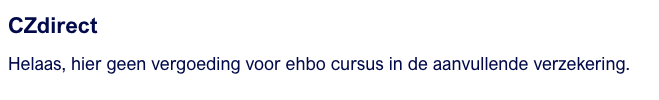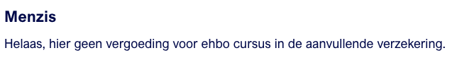 Het was een zeer fijne instructeur, stond open voor vragen en niets was gek. Legde zeer duidelijk en goed uit met ook een kleine verdieping in de stof en hier en daar wat medische achtergrond. Zeer nuttig en interessant.